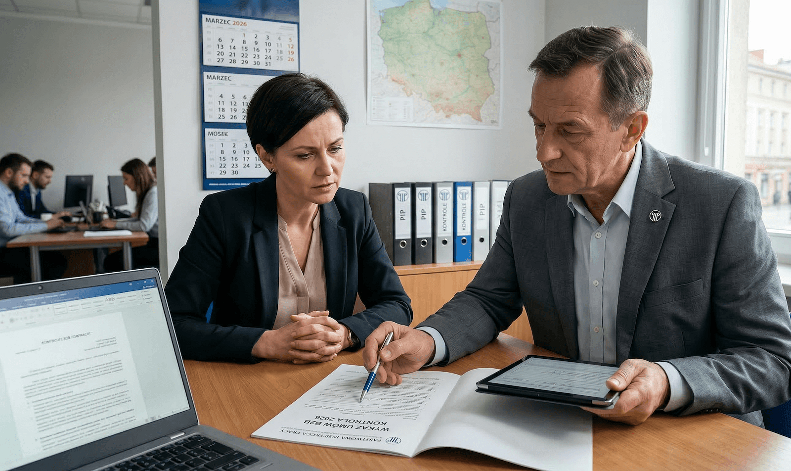 W debacie publicznej łatwo dziś spotkać hasła w stylu „koniec B2B” albo „PIP zamieni kontrakty na etat”. To uproszczenia. Rzeczywista zmiana jest bardziej precyzyjna i jednocześnie dużo poważniejsza. Państwowa Inspekcja Pracy otrzymuje nowe instrumenty proceduralne, które mają skrócić drogę od stwierdzenia nieprawidłowości do formalnego ustalenia, że dana relacja była stosunkiem pracy. To oznacza, że B2B pod lupą 2026 nie jest publicystycznym sloganem, lecz realnym opisem nowego ryzyka dla firm, które przez lata opierały model zatrudnienia na schematach granicznych albo wprost pozornych.